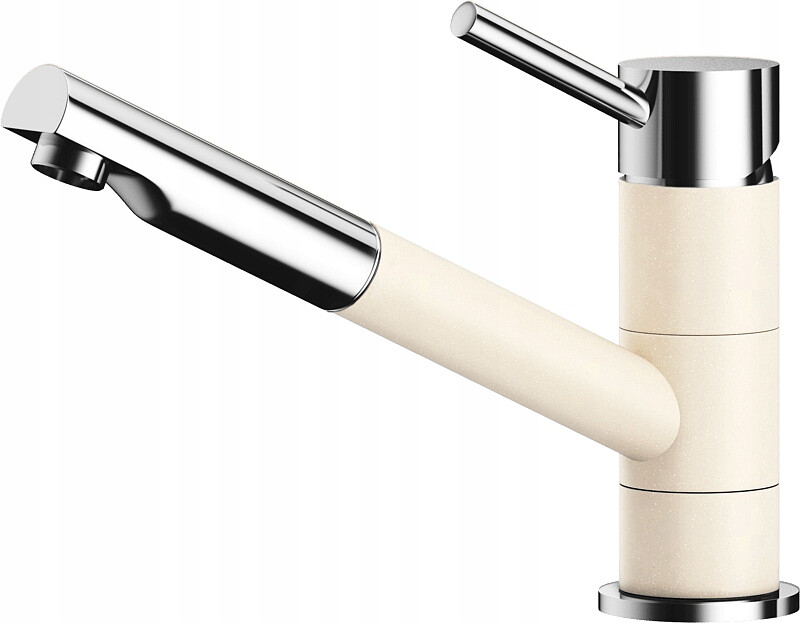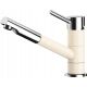 Bateria KWT 05 PO OLD WHITE/CHROME idealnie dopasowana do zlewozmywaków granitowych. Dostępne kolory to: White/Chrome, Old White/Chrome, Sand/Chrome, i Graphite/Chrome. Wyposażona w perlator, który poprzez zasysanie powietrza miesza je z wodą zwiększając przy tym jej objętość co z kolei powoduje zmniejszenie jej zużycia nawet o 50%. Perlator zmiękcza wodę zapobiegając pojawianiu się zacieków z kamienia na naczyniach i zlewozmywaku. Posiada obrotową wylewkę. Głowica ceramiczna daje możliwość precyzyjnego regulowania strumienia wody i jej temperatury. Bateria ma system odkamieniania. Wyciągana wylewka umożliwia wyciągnięcie natrysku baterii i dokładne opłukanie naczyń czy produktów spożywczych stojących na blacie kuchennym. Bateria zlewozmywakowa idealnie wkomponuje się w stylistykę nowoczesnej kuchni. Z pewnością nie zawiedzie oczekiwań użytkowników w zakresie trwałości i niekwestionowanej funkcjonalności.
