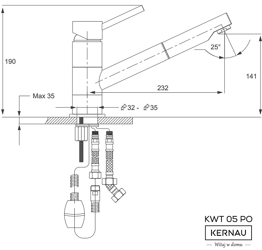 - WYSOKOŚĆ DO KOŃCA WYLEWKI: 141 MM
