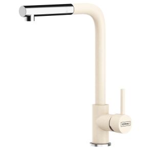 Baterię stojącą umieszcza się na powierzchni zlewu w specjalnie wyciętym otworze. Niektórzy decydują się jednak na zamontownaie baterii w blacie kuchennym w pobliżu zlewozmywaka. Dzięki temu, że producent wyposażył baterię w tylko jedną dźwignię, bez problemu ustawisz wielkość strumienia i temperaturę wody. To praktyczne rozwiązanie, gdyż pozwala na regulowanie baterii jedną ręką. Jednym z kluczowych elementów baterii kuchennej jest głowica, gdyż odpowiada ona za uzyskiwanie strumienia wody o pożądanej intensywności i temperaturze. Dlatego producent zainstalował w tym produkcie głowicę ceramiczną, która jest wytrzymała i odporna na uszkodzenia. Co więcej, taka głowica ma gładkie pierścienie, dzięki czemu jest lepiej chroniona przed kamieniem. To z kolei zapewnia wyższą szczelność systemu. Bateria została wyposażona w wyciąganą wylewkę, która znacznie ułatwia codzienne użytkowanie. Dzięki temu, że wylewka może być wykorzystywana poza zasięgiem zlewozmywaka, bez problemu napełnisz wodą dzbanek, wysoki garnek czy wiadro, umieszczone na blacie kuchennym. Za pośrednictwem wyciąganej wylewki łatwo wyczyścisz każde naczynie, niezależnie od jego rozmiarów i skierujesz strumień wody w trudno dostępne miejsca zlewozmywaka