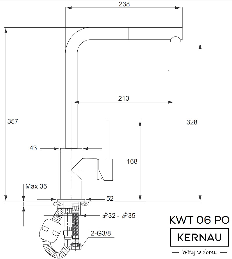 Funkcje dodatkoweObrotowa wylewka, System odkamieniania, Kąt obrotu wylewki 360°