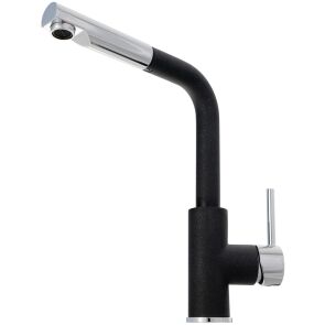 Baterię stojącą instaluje się na powierzchni zlewozmywaka w specjalnie wyciętym otworze. Można również zamontować baterię w blacie kuchennym obok zlewu. Dzięki temu, że baterię wyposażono w tylko jedną dźwignię, swobodnie ustawisz objętość strumienia i temperaturę wody. To użyteczne rozwiązanie, ponieważ pozwala na obsługiwanie baterii jedną ręką. Jednym z najważniejszych elementów baterii kuchennej jest głowica, gdyż jej zadaniem jest regulowanie temperatury wody i wielkości strumienia. Z tego względu producent zainstalował w tym modelu głowicę ceramiczną, która jest trwała i mniej narażona na uszkodzenia. Ponadto tego typu głowica ma gładkie pierścienie, dzięki czemu jest lepiej chroniona przed kamieniem. To z kolei zapewnia wyższą szczelność systemu. Bateria została wyposażona w wyciąganą wylewkę, która istotnie ułatwia codzienne użytkowanie. Dzięki temu, że wylewka może być użytkowana poza obrębem zlewozmywaka, bez problemu napełnisz wodą dzbanek, wysoki garnek czy wiadro, umieszczone na blacie kuchennym. Z jej pomocą z łatwością umyjesz każde naczynie, niezależnie od jego wymiarów i skierujesz strumień wody w trudno dostępne miejsca zlewozmywaka