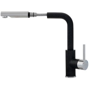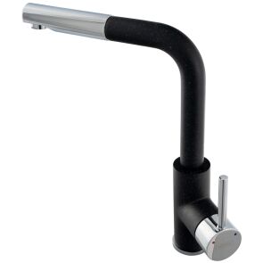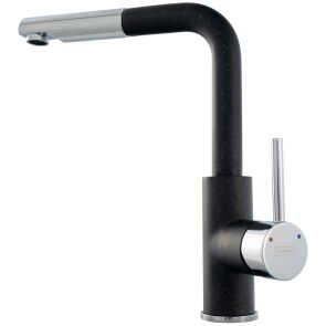 Baterię stojącą umieszcza się na powierzchni zlewu w specjalnie wyciętym otworze. Możliwy jest także montaż baterii w blacie kuchennym w sąsiedztwie zlewozmywaka. Dzięki temu, że producent wyposażył baterię w tylko jeden mieszacz, bez przeszkód ustawisz wielkość strumienia i temperaturę wody. To użyteczne rozwiązanie, ponieważ pozwala na sterowanie baterią jedną ręką. Jednym z najważniejszych elementów baterii kuchennej jest głowica, ponieważ do jej zadań należy regulowanie, dzielenie oraz mieszanie ciepłej i zimnej wody. Z tego względu producent zamontował w tej baterii głowicę ceramiczną, która jest trwała i odporna na uszkodzenia. Co istotne, taka głowica ma gładkie pierścienie, dzięki czemu wolniej osadzają się na niej kamień i zabrudzenia. To z kolei zapobiega powstawaniu nieszczelności. Bateria została wyposażona w wyciąganą wylewkę, która znacząco ułatwia codzienne użytkowanie. Dzięki temu, że wylewka może być użytkowana poza obszarem zlewu, bez żadnych przeszkód napełnisz wodą dzbanek, wysoki garnek czy wiadro, stojące na blacie kuchennym. Z pomocą wyciąganej wylewki z łatwością umyjesz każde naczynie, niezależnie od jego gabarytów i skierujesz strumień wody w trudno dostępne miejsca zlewozmywaka