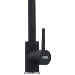 Baterię stojącą umieszcza się na powierzchni zlewozmywaka w specjalnie wyciętym otworze. Możliwy jest także montaż baterii w blacie kuchennym w sąsiedztwie zlewu. Dzięki temu, że producent wyposażył baterię w tylko jeden mieszacz, bez przeszkód wyregulujesz wielkość strumienia i temperaturę wody. To funkcjonalne rozwiązanie, ponieważ pozwala na regulowanie baterii jedną ręką. Jednym z kluczowych elementów baterii kuchennej jest głowica, gdyż odpowiada ona za uzyskiwanie strumienia wody o pożądanej intensywności i temperaturze. Z tego względu producent zamontował w tej baterii głowicę ceramiczną, która jest solidna i odporna na uszkodzenia. Dodatkowo taka głowica ma gładkie pierścienie, dzięki czemu jest lepiej chroniona przed kamieniem. To z kolei zapewnia wyższą szczelność systemu. Wylewka obrotowa zapewni większą swobodę korzystania ze zlewu, szczególnie z dwoma komorami. Dzięki temu, że wylewkę można obracać w pozycji poziomej, dokładnie opłuczesz komory zlewozmywaka i z łatwością wypełnisz wodą naczynia, które nie zmieściłyby się pod tradycyjnym kranem.