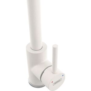 Baterię stojącą instaluje się na powierzchni zlewozmywaka w specjalnie wyciętym otworze. Możliwy jest także montaż baterii w blacie kuchennym w sąsiedztwie zlewu. Dzięki temu, że baterię wyposażono w tylko jeden mieszacz, bez przeszkód ustawisz objętość strumienia i temperaturę wody. To użyteczne rozwiązanie, gdyż umożliwia sterowanie baterią jedną ręką. Jednym z najważniejszych elementów baterii kuchennej jest głowica, ponieważ jej zadaniem jest regulowanie, dzielenie oraz mieszanie ciepłej i zimnej wody. Z tego względu producent zainstalował w tym modelu głowicę ceramiczną, która jest solidna i odporna na uszkodzenia. Dodatkowo tego typu głowica ma gładkie pierścienie, dzięki czemu jest lepiej chroniona przed kamieniem. To z kolei przekłada się na wyższą szczelność systemu. Wylewka obrotowa zapewni większą swobodę korzystania ze zlewozmywaka, w szczególności z dwoma komorami. Dzięki temu, że wylewkę można obracać w pozycji poziomej, dokładnie wyczyścisz komory zlewozmywaka i łatwo napełnisz wodą naczynia, które nie zmieściłyby się pod tradycyjnym kranem.