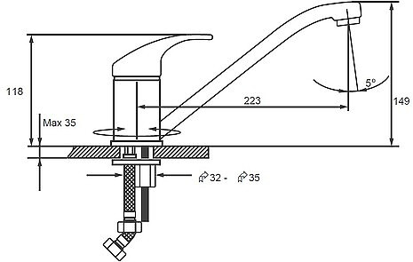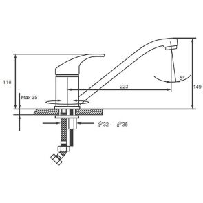 - WYSOKOŚĆ DO KOŃCA WYLEWKI: 126 MM