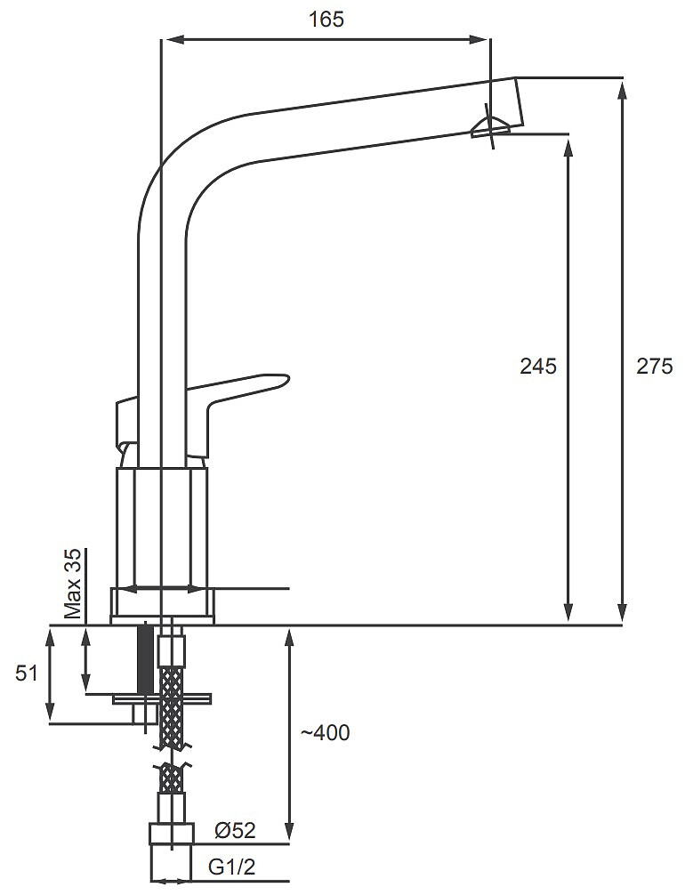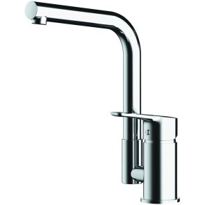 Baterię stojącą umieszcza się na powierzchni zlewozmywaka w specjalnie wyciętym otworze. Możliwy jest także montaż baterii w blacie kuchennym w pobliżu zlewu. Dzięki temu, że baterię wyposażono w tylko jeden uchwyt, płynnie ustawisz objętość strumienia i temperaturę wody. To użyteczne rozwiązanie, gdyż umożliwia sterowanie baterią jedną ręką. Jednym z kluczowych elementów baterii kuchennej jest głowica, ponieważ odpowiada ona za regulowanie temperatury wody i wielkości strumienia. Dlatego producent zainstalował w tej baterii głowicę ceramiczną, która jest trwała i mniej podatna na uszkodzenia. Poza tym tego typu głowica ma gładkie pierścienie, dzięki czemu wolniej osadzają się na niej kamień i zabrudzenia. To z kolei zapewnia wyższą szczelność systemu. Wylewka obrotowa zwiększy swobodę korzystania ze zlewu, w szczególności z dwoma komorami. Dzięki temu, że wylewkę można obracać w pozycji poziomej, dokładnie wyczyścisz komory zlewozmywaka i z łatwością napełnisz wodą naczynia, które nie zmieściłyby się pod klasycznym kranem.
