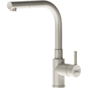 Dzięki temu, że bateria została wyposażona w tylko jeden mieszacz, bez problemu wyregulujesz wielkość strumienia i temperaturę wody. To użyteczne rozwiązanie, ponieważ pozwala na sterowanie baterią jedną ręką. Jednym z najważniejszych elementów baterii kuchennej jest głowica, gdyż jej zadaniem jest regulowanie temperatury wody i wielkości strumienia. Dlatego producent zamontował w tym modelu głowicę ceramiczną, która jest solidna i odporna na uszkodzenia. Co ważne, tego typu głowica ma gładkie pierścienie, dzięki czemu jest lepiej chroniona przed kamieniem. To z kolei zapobiega powstawaniu nieszczelności. Bateria została wyposażona w wyciąganą wylewkę, która znacząco usprawnia codzienne użytkowanie. Dzięki temu, że wylewka może być używana poza zasięgiem zlewu, spokojnie napełnisz wodą czajnik, duży garnek czy wiadro, umieszczone na blacie kuchennym. Z pomocą wyciąganej wylewki bez wysiłku umyjesz każde naczynie, niezależnie od jego rozmiarów i skierujesz strumień wody w trudno dostępne miejsca zlewu W baterii zamontowano perlator, który pomoże Ci zmniejszyć zużycie wody. Jest to niewielki pierścień w postaci sitka. Napowietrza on wodę, sprawiając, że jej strumień wydaje się większy i mocniejszy niż jest w rzeczywistości. W efekcie strumień wody jest mniejszy, co przekłada się na oszczędność wody. Co więcej, perlator ukierunkowuje strumień wody, dzięki czemu nie rozpryskuje się ona na boki w czasie zmywania albo mycia rąk.