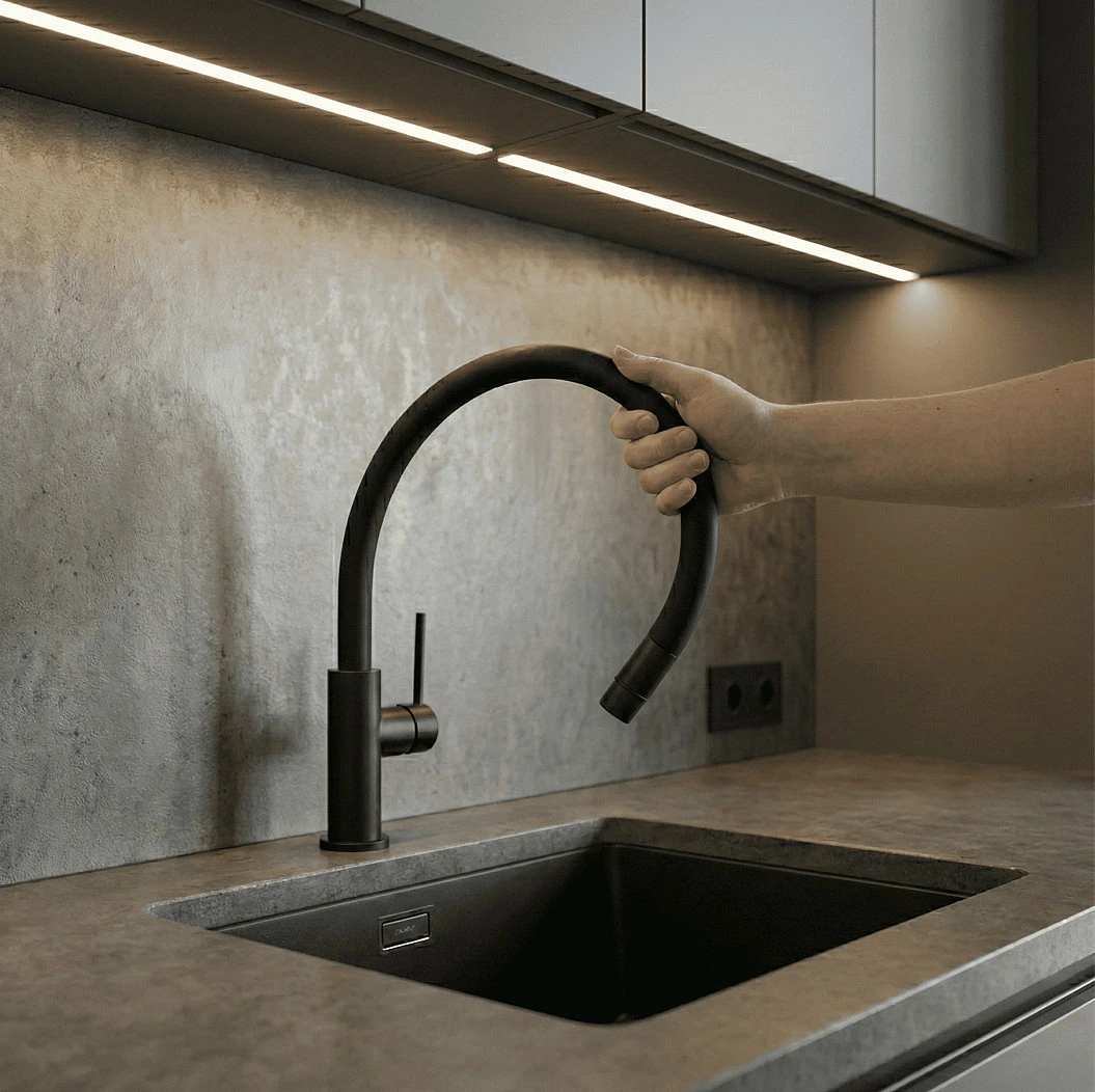 Odkryj nowy wymiar komfortu w swojej kuchni dzięki designerskiej baterii z elastyczną wylewką w modnym wykończeniu Matt Black. Solidny korpus wykonany z trwałego mosiądzu łączy się tu z innowacyjną funkcjonalnością, oferując pełną swobodę ruchów podczas zmywania i gotowania. To idealne rozwiązanie do nowoczesnych wnętrz, które gwarantuje niezawodność dzięki precyzyjnej głowicy ceramicznej i doskonałej ergonomii.