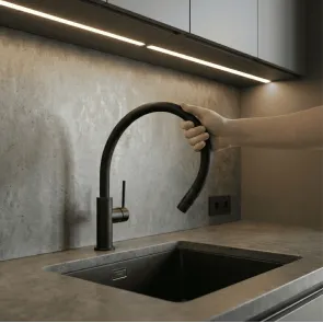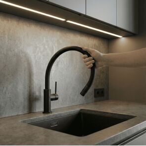 Zapomnij o ograniczeniach przy zlewozmywaku. Dzięki elastycznej wylewce z pamięcią kształtu, masz pełną kontrolę nad strumieniem wody. Możesz dowolnie wyginać wylewkę, by precyzyjnie opłukać delikatne owoce, dotrzeć do każdego zakamarka komory zlewu lub bez trudu napełnić wysoki garnek, który normalnie nie zmieściłby się pod kranem.