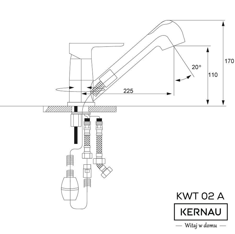 Baterię stojącą umieszcza się na powierzchni zlewu w specjalnie wyciętym otworze. Możliwy jest także montaż baterii w blacie kuchennym w pobliżu zlewozmywaka. Dzięki temu, że producent wyposażył baterię w tylko jeden uchwyt, bez problemu ustawisz objętość strumienia i temperaturę wody. To funkcjonalne rozwiązanie, gdyż umożliwia sterowanie baterią jedną ręką. Jednym z najważniejszych elementów baterii kuchennej jest głowica, gdyż do jej zadań należy regulowanie, dzielenie oraz mieszanie ciepłej i zimnej wody. Z tego względu producent zamontował w tym modelu głowicę ceramiczną, która jest solidna i mniej podatna na uszkodzenia. Co istotne, tego typu głowica ma gładkie pierścienie, dzięki czemu istnieje mniejsze ryzyko osadzania się na nich kamienia. To z kolei zapobiega powstawaniu nieszczelności. Bateria została wyposażona w wyciąganą wylewkę, która znacznie ułatwia codzienne użytkowanie. Dzięki temu, że wylewka może być wykorzystywana poza obszarem zlewu, spokojnie napełnisz wodą dzbanek, duży garnek czy wiadro, umieszczone na blacie kuchennym. Za pośrednictwem wyciąganej wylewki bez wysiłku wyczyścisz każde naczynie, niezależnie od jego rozmiarów i skierujesz strumień wody w trudno dostępne miejsca zlewu
