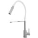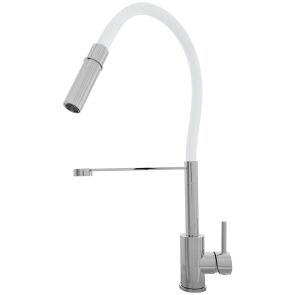 Baterię stojącą instaluje się na powierzchni zlewu w specjalnie wyciętym otworze. Można również zamontować baterię w blacie kuchennym w pobliżu zlewu. Dzięki temu, że baterię wyposażono w tylko jedną dźwignię, płynnie ustawisz objętość strumienia i temperaturę wody. To praktyczne rozwiązanie, gdyż pozwala na sterowanie baterią jedną ręką. Jednym z kluczowych elementów baterii kuchennej jest głowica, ponieważ odpowiada ona za regulowanie, dzielenie oraz mieszanie ciepłej i zimnej wody. Z tego względu producent zamontował w tej baterii głowicę ceramiczną, która jest solidna i odporna na uszkodzenia. Poza tym tego typu głowica ma gładkie pierścienie, dzięki czemu wolniej osadzają się na niej kamień i zabrudzenia. To z kolei zapobiega powstawaniu nieszczelności. Wylewka obrotowa zwiększy swobodę korzystania ze zlewu, w szczególności z dwoma komorami. Dzięki temu, że wylewkę można obracać w pozycji poziomej, precyzyjnie wyczyścisz komory zlewozmywaka i łatwo napełnisz wodą naczynia, które nie zmieściłyby się pod standardowym kranem.
