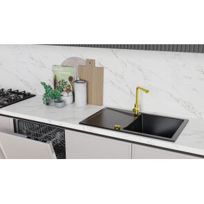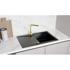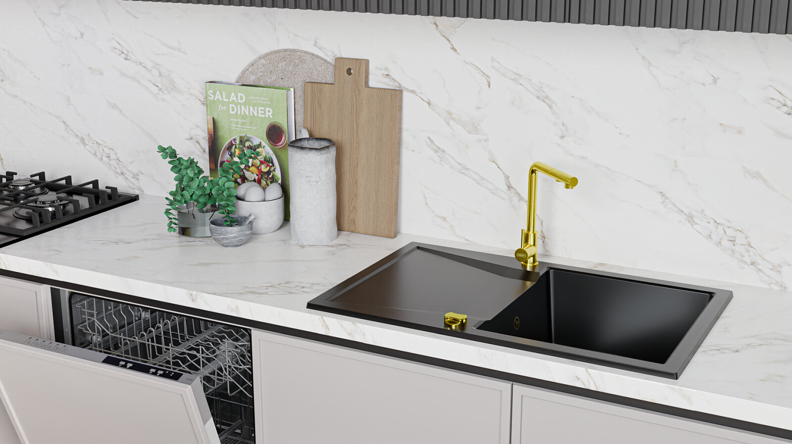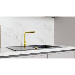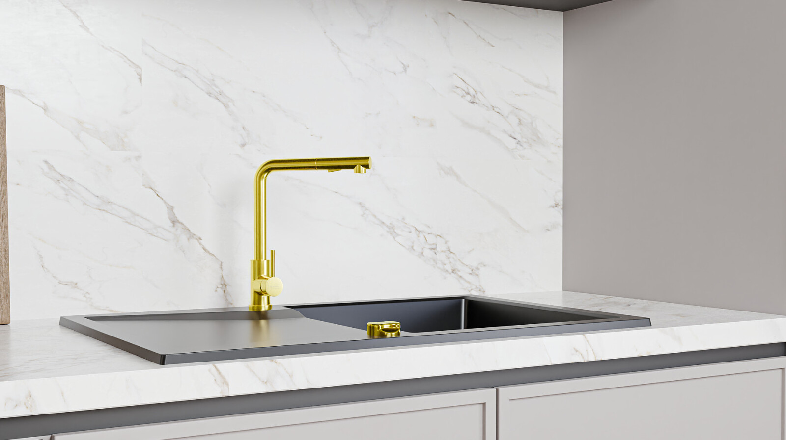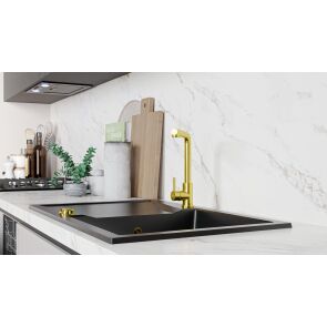 Baterię stojącą montuje się na powierzchni zlewozmywaka w specjalnie wyciętym otworze. Możliwy jest także montaż baterii w blacie kuchennym w sąsiedztwie zlewu. Dzięki temu, że baterię wyposażono w tylko jeden uchwyt, bez problemu wyregulujesz wielkość strumienia i temperaturę wody. To praktyczne rozwiązanie, gdyż umożliwia sterowanie baterią jedną ręką. Jednym z głównych elementów baterii kuchennej jest głowica, gdyż odpowiada ona za uzyskiwanie strumienia wody o pożądanej intensywności i temperaturze. Dlatego producent zamontował w tym modelu głowicę ceramiczną, która jest trwała i mniej podatna na uszkodzenia. Poza tym taka głowica ma gładkie pierścienie, dzięki czemu jest lepiej chroniona przed kamieniem. To z kolei przekłada się na wyższą szczelność systemu. Bateria ma wyciąganą wylewkę, która istotnie usprawnia codzienne użytkowanie. Dzięki temu, że wylewka może być wykorzystywana poza sferą zlewozmywaka, spokojnie napełnisz wodą czajnik, duży garnek czy wiadro, umieszczone na blacie kuchennym. Z pomocą wyciąganej wylewki łatwo umyjesz każde naczynie, niezależnie od jego gabarytów i skierujesz strumień wody w trudno dostępne miejsca zlewozmywaka