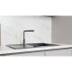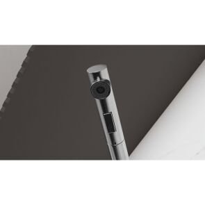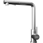 Baterię stojącą umieszcza się na powierzchni zlewu w specjalnie wyciętym otworze. Możliwy jest także montaż baterii w blacie kuchennym obok zlewu. Dzięki temu, że bateria została wyposażona w tylko jeden mieszacz, bez problemu wyregulujesz objętość strumienia i temperaturę wody. To użyteczne rozwiązanie, ponieważ pozwala na obsługiwanie baterii jedną ręką. Jednym z głównych elementów baterii kuchennej jest głowica, ponieważ odpowiada ona za regulowanie, dzielenie oraz mieszanie ciepłej i zimnej wody. W związku z tym producent zainstalował w tej baterii głowicę ceramiczną, która jest solidna i odporna na uszkodzenia. Ponadto taka głowica ma gładkie pierścienie, dzięki czemu istnieje mniejsze ryzyko osadzania się na nich kamienia. To z kolei zapobiega powstawaniu nieszczelności. Bateria ma wyciąganą wylewkę, która istotnie ułatwia codzienne użytkowanie. Dzięki temu, że wylewka może być wykorzystywana poza obrębem zlewozmywaka, bez problemu napełnisz wodą czajnik, duży garnek czy wiadro, znajdujące się na blacie kuchennym. Za pośrednictwem wyciąganej wylewki łatwo umyjesz każde naczynie, niezależnie od jego wymiarów i skierujesz strumień wody w trudno dostępne miejsca zlewozmywaka