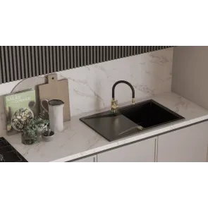 Baterię stojącą instaluje się na powierzchni zlewozmywaka w specjalnie wyciętym otworze. Możliwy jest także montaż baterii w blacie kuchennym obok zlewu. Dzięki temu, że bateria została wyposażona w tylko jeden mieszacz, bez przeszkód ustawisz objętość strumienia i temperaturę wody. To funkcjonalne rozwiązanie, gdyż pozwala na sterowanie baterią jedną ręką. Jednym z istotnych elementów baterii kuchennej jest głowica, gdyż odpowiada ona za regulowanie, dzielenie oraz mieszanie ciepłej i zimnej wody. W związku z tym producent zamontował w tym produkcie głowicę ceramiczną, która jest trwała i mniej narażona na uszkodzenia. Co ważne, tego typu głowica ma gładkie pierścienie, dzięki czemu wolniej osadzają się na niej kamień i zabrudzenia. To z kolei zapewnia wyższą szczelność systemu. Wylewka obrotowa zwiększy swobodę korzystania ze zlewu, szczególnie z dwoma komorami. Dzięki temu, że wylewkę można obracać w osi poziomej, precyzyjnie wyczyścisz komory zlewozmywaka i łatwo napełnisz wodą naczynia, które nie zmieściłyby się pod klasycznym kranem.