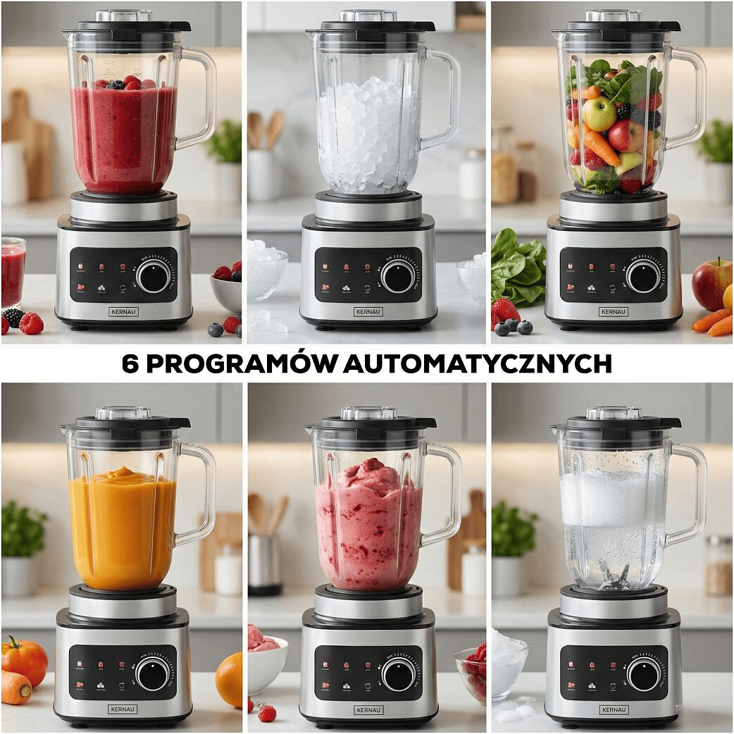 Funkcje dodatkowe6 programów automatycznych (smoothie, kruszenie lodu, warzywa i owoce, purée, lody, czyszczenie)