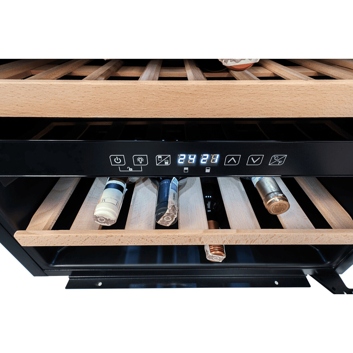 Odpowiednią dla danego szczepu wina temperaturę uzyskasz za pomocą precyzyjnego elektronicznego panelu sterowania. Zakres temperatur wynosi tutaj od 5 aż do 22°C.