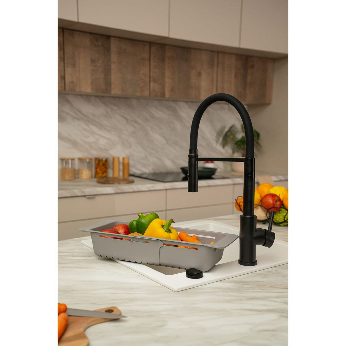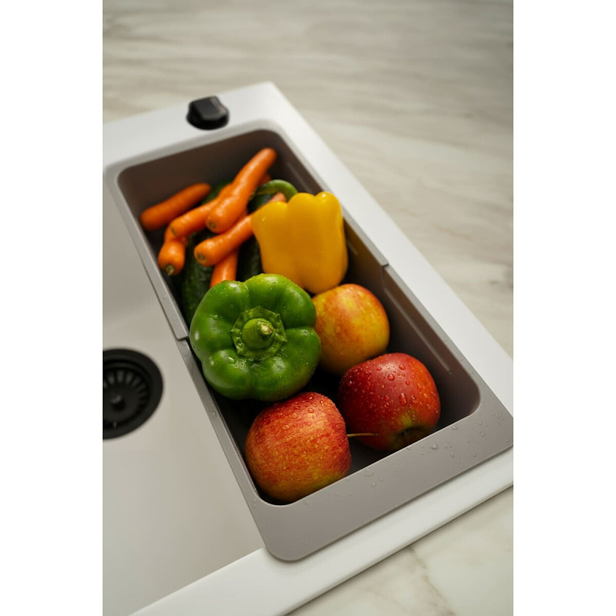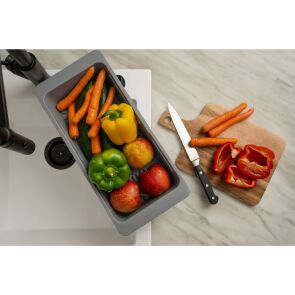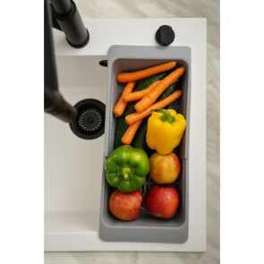 Teleskopowy koszyk ociekowy dedykowany do zlewozmywaków granitowych. Idealnie sprawdzi się jako ociekacz dla warzyw, owoców oraz sztućców