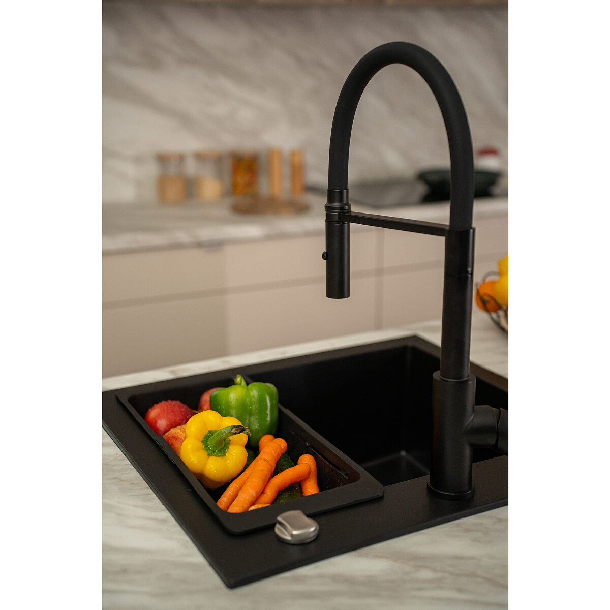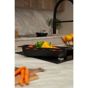 Teleskopowy koszyk ociekowy dedykowany do zlewozmywaków granitowych. Idealnie sprawdzi się jako ociekacz dla warzyw, owoców oraz sztućców