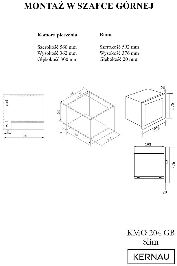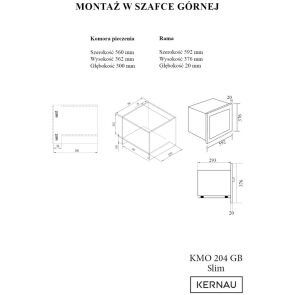 Kuchenka mikrofalowa KMO 204 G B Slim. Do zabudowy. Pojemność 20l. Moc mikrofali 700W. Grill.