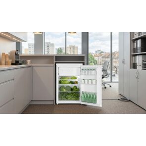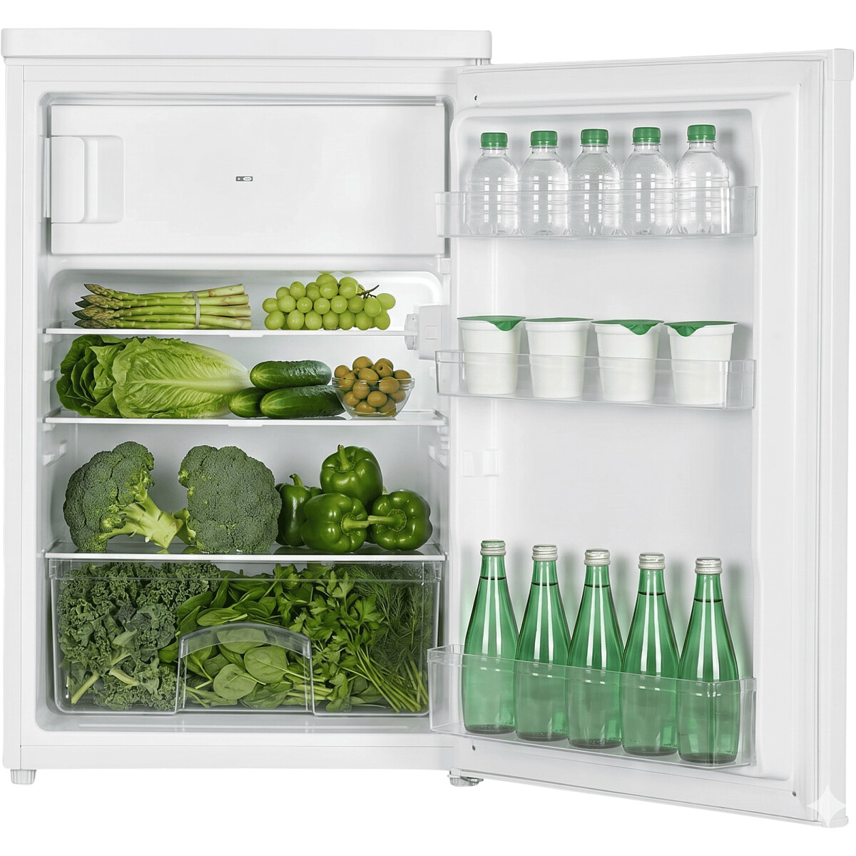 Kubatura w lodówce jest niezbyt duża, dobrze zorganizowana – w sam raz, by optymalnie rozłożyć w niej niezbędne wiktuały. Praktyczna szuflada w chłodziarce stwarza odpowiednie warunki do przechowywania świeżych produktów. Sprawia to, że możesz kupować więcej, nie martwiąc się o zmarnowanie zapasów. Na drzwiach lodówki znajdziesz odpowiednią liczbę balkoników do przetrzymywania napojów, butelek czy kartonów z mlekiem. Atutem tego urządzenia jest bezgłośna praca. Odgłos, który wydaje, jest podobny do cichej rozmowy, co sprawia, że lodówka nie będzie Ci przeszkadzać na co dzień.