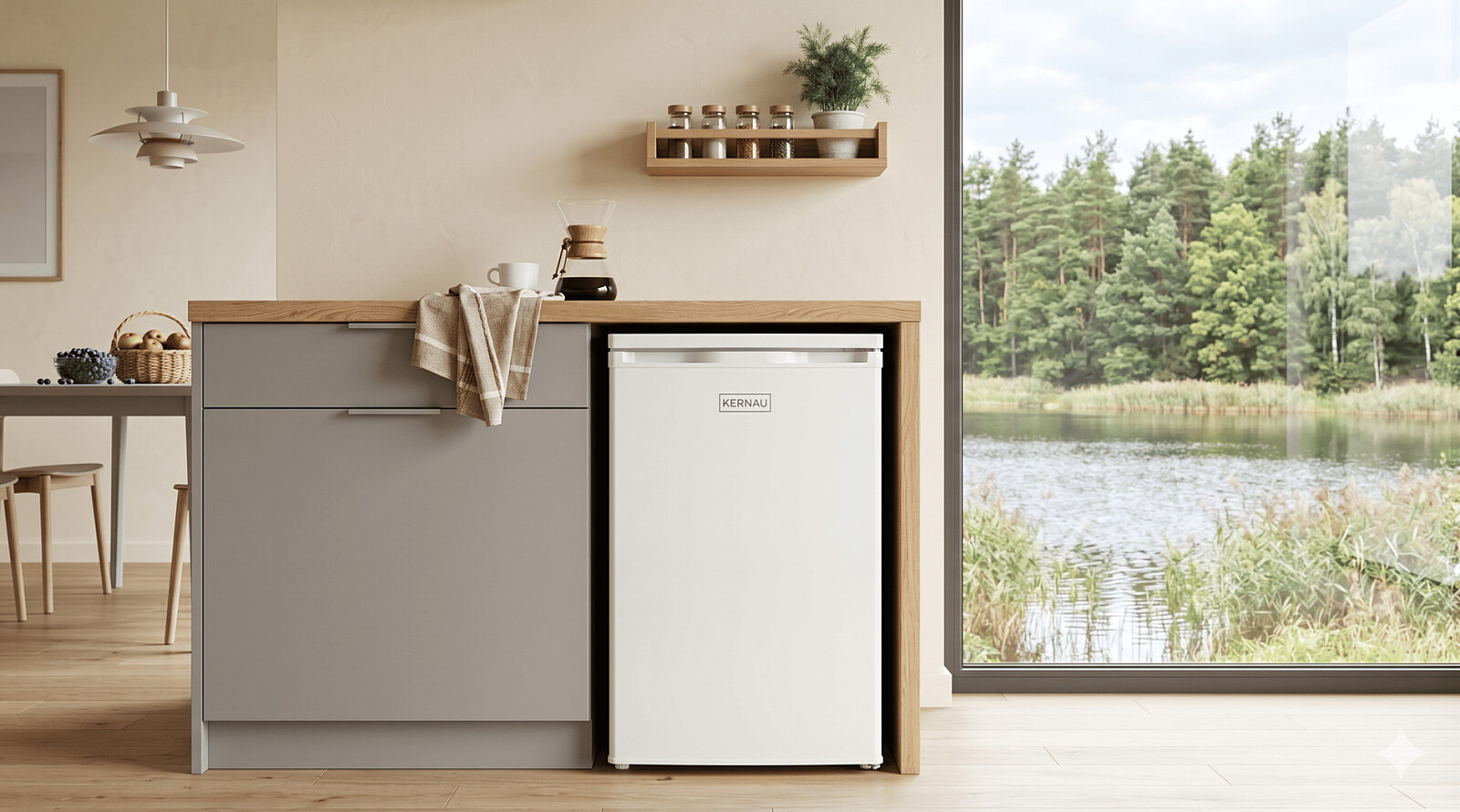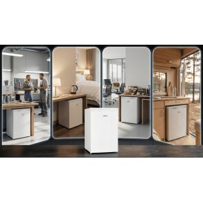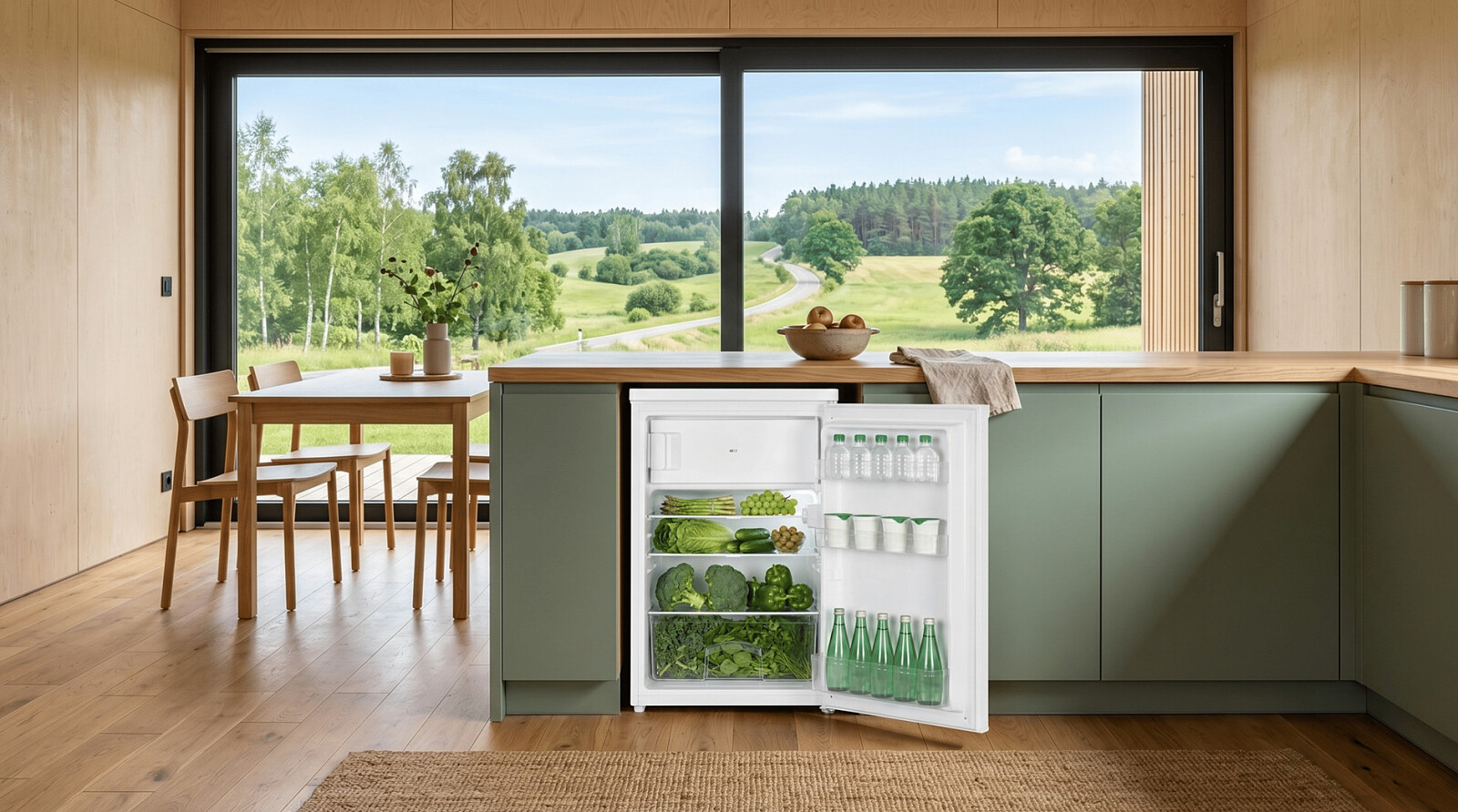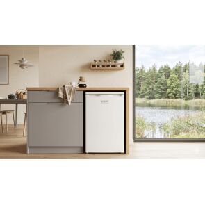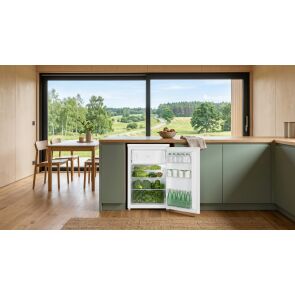 Model emituje hałas na standardowym poziomie, dlatego nie będzie rozpraszać Cię w czasie gotowania. Ta lodówka oferuje sterowanie mechaniczne, które umożliwia wybór orientacyjnej temperatury według zapotrzebowania. Dzięki temu, że lodówka umożliwia obustronny montaż drzwi, możesz dopasować ją do swoich potrzeb i pomieszczenia kuchennego. Zmiana kierunku otwierania drzwi jest możliwa dzięki uniwersalnym zawiasom.