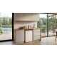 Ta lodówka wolnostojąca może zostać umieszczona w każdym miejscu w kuchni. Jest łatwa w instalacji, a dzięki estetycznemu wyglądowi stanie się dodatkowym elementem dekoracyjnym w pomieszczeniu. Ten model będzie dobrym wyborem do kawalerki. Klasa energetyczna w uśrednionym zakresie według aktualnych norm Unii Europejskiej pozwala wykorzystywać mniej prądu niż przy urządzeniach takiej samej jakości, ale w niższych klasach.
