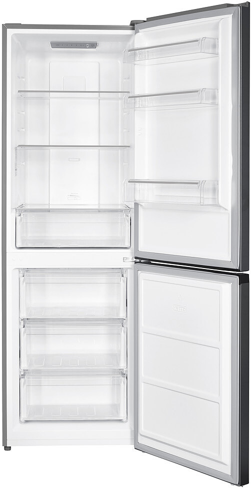 Wolnostojąca chłodziarko-zamrażarka o pojemności 240 litrów. Urządzeniem sterujemy mechanicznie za pomocą pokrętła. W zamrażarce występuje system chłodzenia NoFrost, który dba o zachowanie odpowiedniej temperatury. Wewnętrzne ledowe oświetlenie oraz automatyczny system rozmrażania podnoszą komfort z jej użytkowania. Wysokość lodówki to 166 cm, a szerokość 55 cm.