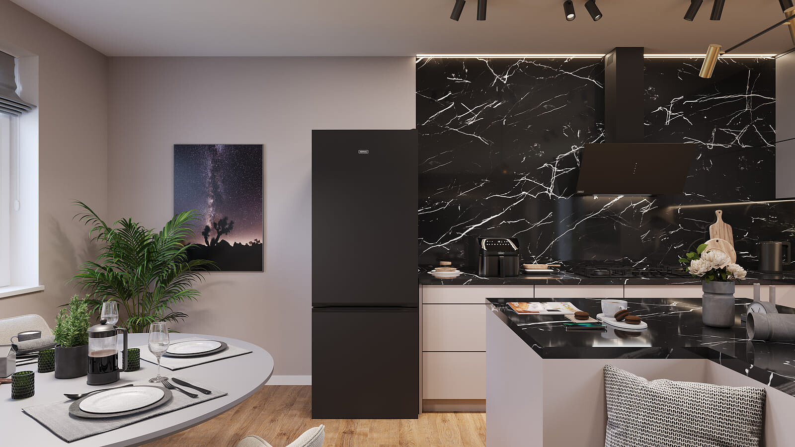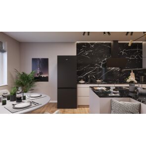 Funkcje, takie jak Super Freeze zamrażarce i Super Cool w chłodziarce pozwalają na schładzanie żywności lub napojów w bardzo krótkim czasie. Ponadto lodówka posiada kostkarkę twistową. Za jej sprawą bez najmniejszego wysiłku przygotujesz zimny napój w upalny dzień. Wystarczy, że obrócisz pokrętło kostkarki, alód wysypie się do specjalnego pojemnika. Czarny półmatowy front powoduje, że lodówka wygląda elegancko i pasuje do nowoczesnych aranżacji.