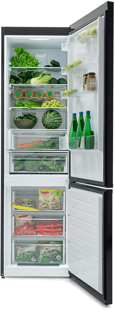 Przemyślane rozmieszczenie półek i szuflad pozwala na wygodne przechowywanie wszystkich Twoich ulubionych produktów, niezależnie od ich wielkości. Przejrzysty układ i jasne oświetlenie daje większą kontrolę nad całą zawartością naszej lodówki, dzięki czemu zmarnujemy mniej jedzenia. Komfort użytkowania zwiększa też intuicyjne sterowanie elektroniczne.