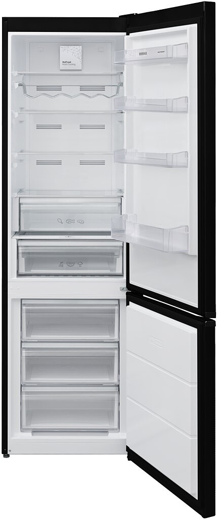 Lodówka ma system NoFrost Multi Cooling, który sprawia, że schłodzone powietrze krąży swobodnie wewnątrz urządzenia, docierając do każdego zakamarka. To rozwiązanie dłużej utrzymuje świeżość żywności i zachowanie jej walorów smakowych.