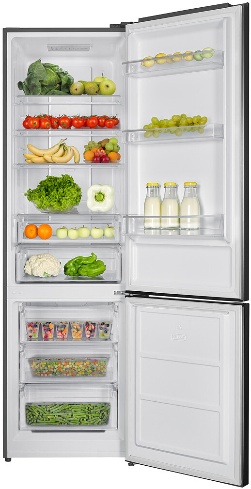 Plusem urządzenia jest dyskretna praca. Odgłos, który wydaje, jest podobny do cichej rozmowy, co sprawia, że lodówka nie będzie Ci przeszkadzać w codziennej pracy. Urządzenie emituje odgłosy na średnim poziomie, dzięki czemu nie będzie zakłócać Twojej pracy w kuchni. W chłodziarce zastosowano system No Frost, który gwarantuje prawidłowy obieg powietrza i utrzymuje niską wilgoć. Sprawia to, że na ściankach komory chłodzenia nie gromadzi się szron ani lód, co całkowicie zwalnia z konieczności ręcznego rozmrażania. W chłodziarko-zamrażarce producent zastosował sterowanie elektroniczne. Taki moduł sterowania jest bardzo wygodny w obsłudze i pozwala na precyzyjne ustawienie temperatury w części chłodzącej lub w komorze mrożenia.