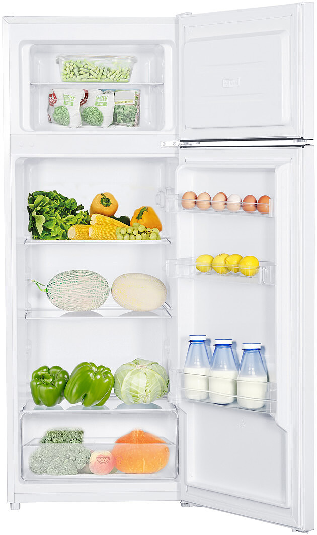 Przestrzeń w modelu jest niezbyt duża, dobrze zorganizowana – w sam raz, aby optymalnie rozlokować w niej niezbędne wiktuały. Dzięki regulacji wysokości półek możesz trzymać w chłodziarce produkty o różnych gabarytach. Wystarczy, że zwiększysz dystans między półkami, a z łatwością włożysz pojemnik, który w standardowych warunkach by się nie zmieścił. Użyteczna szuflada zapewnia najlepsze warunki do przechowywania świeżej żywności. Sprawia to, że możesz kupować więcej, nie martwiąc się o zmarnowanie żywności. Odpowiednia liczba balkoników na drzwiach lodówki pozwoli Ci na przetrzymywanie niemal wszystkich produktów - od wysokich butelek po nieduże produkty nabiałowe.
