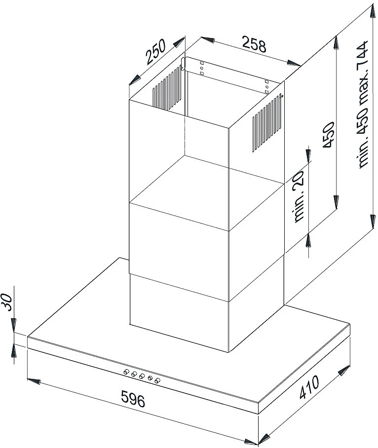 - WYMIARY KOMINA (WXSXG): 450-744 X 258 X 250 MM