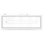 Elegancki okap przeznaczony do zabudowy. Zachwyca wyglądem i świetnymi parametrami. Został wykonany ze stali lakierowanej oraz białego szkła. Materiały te nie tylko pięknie się prezentują, ale ich jakość jest też wysoka. W urządzeniu zastosowano oświetlenie LED w postaci listwy biegnącej przez środek okapu. Listwa jest przesłonięta szkłem, dzięki czemu jest chroniona przed zabrudzeniem i idealni współgra z całością urządzenia. Najwyższą wygodę obsługi zapewniają przyciski Soft Touch oraz dołączony do okapu pilot. 4 stopnie pracy wentylatora pomogą zoptymalizować wydajność i pobór mocy w stosunku do ilości oparów, jakie powstają podczas gotowania. Szczelinowy system zasysania umożliwia w pełni wydajną pracę urządzenia przy jednoczesnym ukryciu elementów filtrujących.