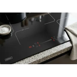Interakcja z płytą KIH 6427-4B opiera się na naturalnych gestach. Panel sterowania typu Slider to ergonomiczna linia, po której wystarczy przesunąć opuszkiem palca, aby zmienić intensywność grzania. Reakcja jest natychmiastowa, a wybór jednego z 9 poziomów mocy odbywa się z precyzją, której nie zapewnią tradycyjne przyciski. To komfort, który poczujesz przy każdym dotknięciu.