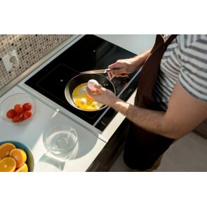Płyta grzewcza ma standardową szerokość, dlatego sprawdzi się w dużej części pomieszczeń kuchennych. Do wyboru masz dość dużo poziomów mocy, co sprawi, że spokojnie dobierzesz adekwatną temperaturę do konkretnych rodzajów potraw, np. do smażenia filetów, duszenia czy roztapiania czekolady. Ten sprzęt obsługuje się za pośrednictwem dotykowego panelu sterującego. Przedstawione rozwiązanie ma kilka plusów - zapewnia szybki dostęp do specjalnych opcji, pozwala na dokładne wyregulowanie mocy pól grzejnych i umożliwia niezwłoczną reakcję w przypadku nieprzewidzianych przypadków. Dzięki innowacyjnej funkcji Booster możesz jeszcze szybciej przyrządzać potrawy. Ten system powiększa moc konkretnego pola grzewczego nawet o dziesiątki procent, co przekłada się na szybkość gotowania.