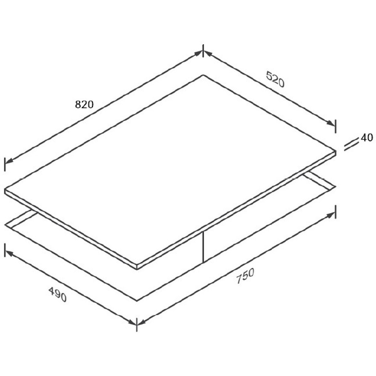 - OTWÓR MONTAŻOWY (D × G × W) + SZKŁO 4 MM: 750 × 490 × 50 MM