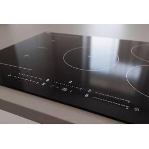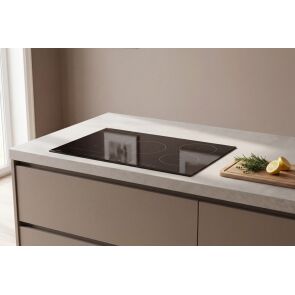 Wyjątkowość tego modelu podkreślają detale. Czarne szkło ceramiczne zostało ozdobione srebrnymi grafikami, które nadają urządzeniu lekkości i technologicznego sznytu. W połączeniu z precyzyjnym szlifem krawędzi typu C, płyta staje się biżuterią Twojej kuchni, łatwą w utrzymaniu czystości i bezpieczną w dotyku.