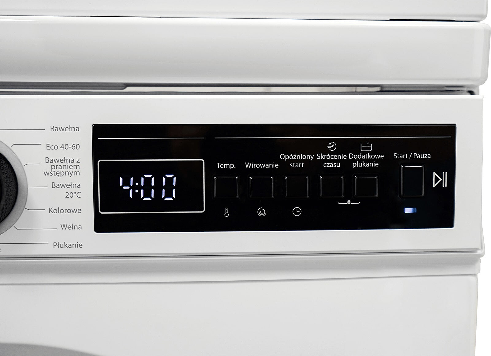 Dodatkowe funkcjeSkracanie czasu prania, Wybór prędkości wirowania, Wybór temperatury prania, Dodatkowe płukanie, Wskaźnik pozostałego czasu prania