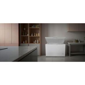 Ten model oferuje bardzo dużą kubaturę, dlatego sprawdzi się zarówno jako sprzęt dla wieloosobowej rodziny, jak i niewielkiej restauracji. Do kontrolowania porządku w zamrażarce skrzyniowej służą podwieszane kosze znajdujące się pod klapą. Ułożysz w nich drobne produkty żywnościowe, żeby łatwo po nie sięgać. Jednym z ważniejszych parametrów zamrażarki jest zdolność zamrażania. Informuje, jak dużo żywności jest w stanie zamrozić w ciągu 24 godzin. To urządzenie cechuje się typową wydajnością, dlatego nada się zarówno do krótkotrwałego, jak i długiego mrożenia produktów spożywczych.