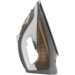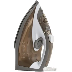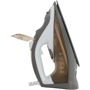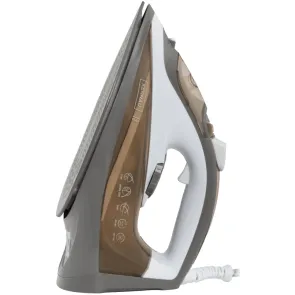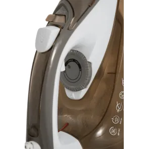 Żelazko ma stopę ceramiczną. Ten typ stopy jest obecnie niezwykle ceniony, bo ma dobre cechy. Zapewnia doskonały poślizg na tkaninie i jest wytrzymały na zadrapania, np. od sprzączek. Żelazko ma dużą moc, dzięki czemu szybko osiąga odpowiednią temperaturę i jest gotowe do pracy w krótkim czasie od włączenia. Używając tego żelazka, możesz prasować odzież z wykorzystaniem pary. Urządzenie generuje parę na średnim poziomie, co ułatwi pracę.