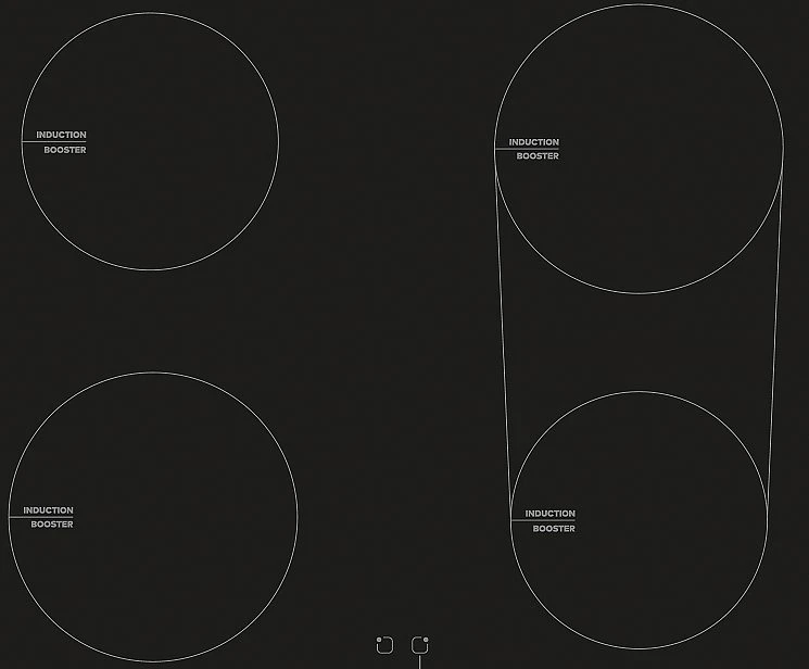 - BRIDGE: Dzięki tej funkcji możemy połączyć dwa sąsiednie pola w jedno. Ułatwia to gotowanie potraw nawet w wyjątkowo dużych naczyniach o nieregularnych kształtach. Problemem nie będą już duże patelnie grillowe, brytfanny, jak również większa liczba małych naczyń.