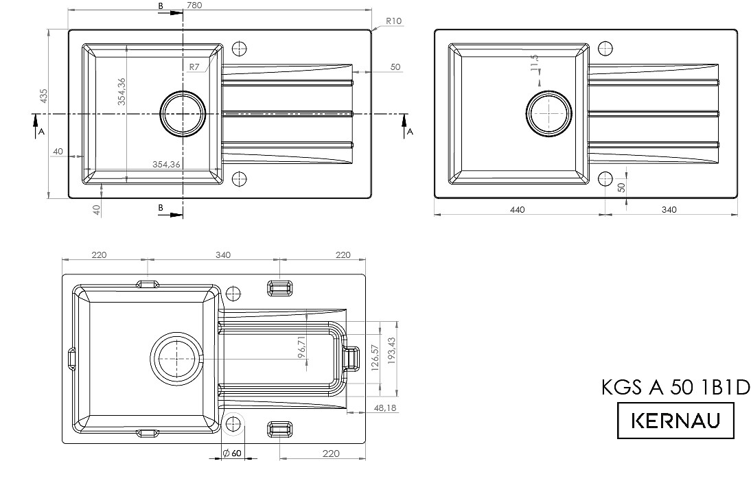 • Zestaw Kernau Zlewozmywak KGS A 50 1B1D Graphite + Bateria KWT 29 Elastic Black