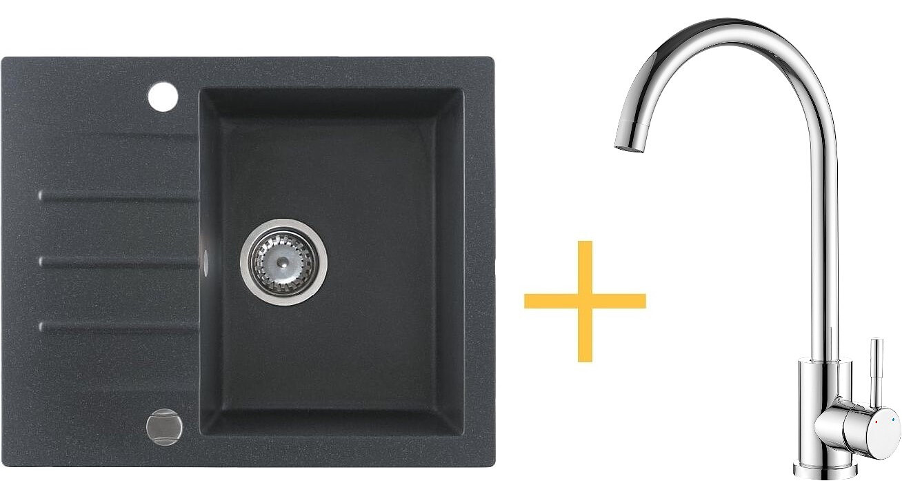 Zlew granitowy KGS A 4560 1B1D to trwały i odporny na wszelkiego rodzaju uszkodzenia produkt. Piękny kolor Black Metallic charakteryzuje się czarną granitową powierzchnią z połyskującymi drobinkami, które idealnie współgrają z kolorem baterii. Granit - materiał, z którego został wykonany zlewozmywak jest najwyższej jakości, dzięki czemu zlew będzie prezentował się pięknie przez lata. Potwierdzeniem jego jakości jest aż 10-letnia gwaran. Proporcje zlewu i baterii są tutaj perfekcyjnie dopasowane, by zapewnić użytkownikowi pełną ergonomię pracy w kuchni. Bateria KWT 30 Chrome to sprzęt wykonany z wysokiej jakości stali nierdzewnej, wyposażona w perlator napowietrzający strumień wody, głowicę ceramiczną oraz obrotową wylewkę. Dzięki temu, że kąt obrotu wylewki to aż 360° z łatwością opłuczesz wszystkie naczynia lub napełnisz wodą większą miskę. Zastosowany w baterii system odkamieniania utrudnia osadzanie się kamienia na wylewce, więc utrzymanie jej w czystości jest bardzo proste. Jakość wykonania baterii potwierdza 5 lat gwarancji.