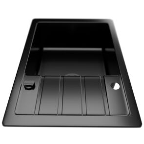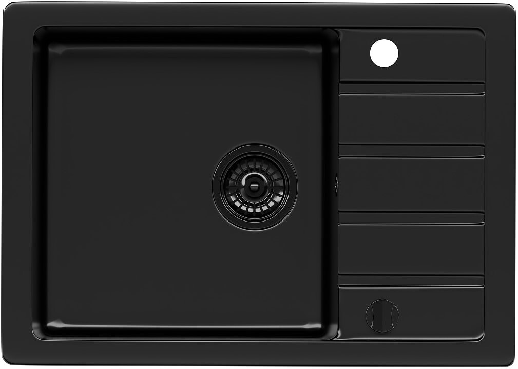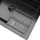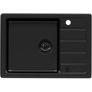 Zlewozmywak jest wykonany z jednolicie czarnego granitu o nasyconej barwie. Bateria jest połączeniem czerni i klasycznego inoxu, czyli stali nierdzewnej. Taka kolorystyka wygląda dobrze w każdej nowoczesnej kuchni - stylowo i ponadczasowo.