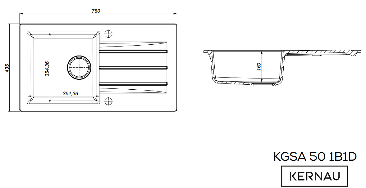 • Zlewozmywak granitowy Kernau KGS A 50 1B1D Graphite