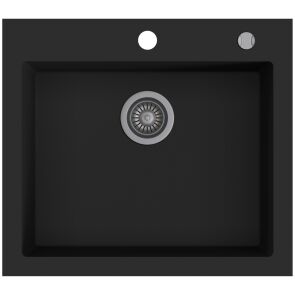 Zlewozmywak granitowy KGS H 60 1B Deep Black przyciąga uwagę nasyconym czarnym kolorem o półmatowym wykończeniu.