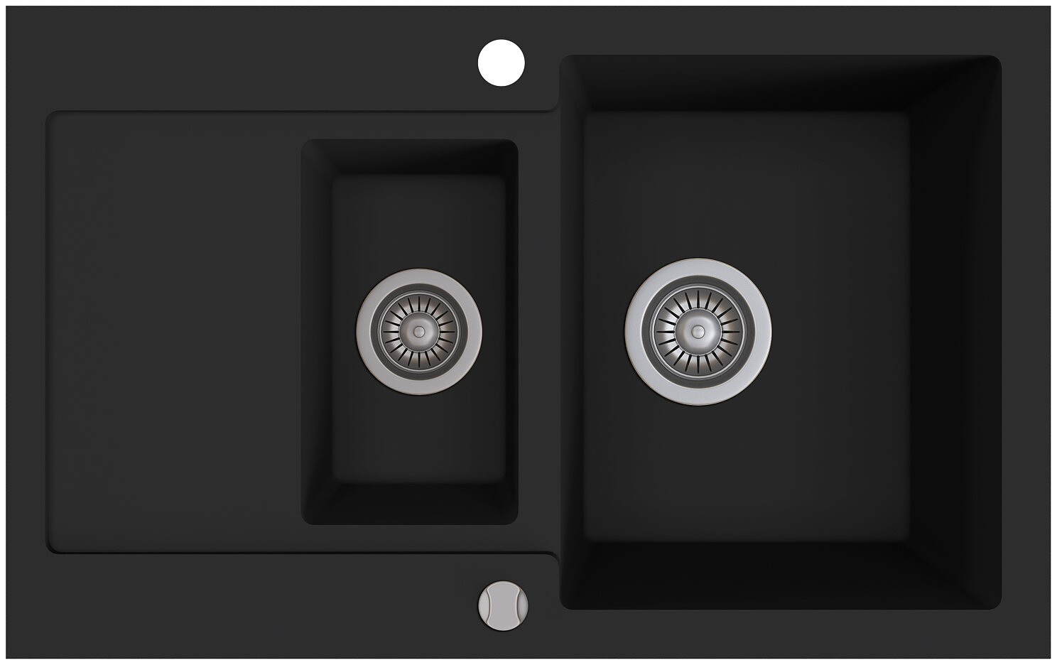 Niezwykle funkcjonalny zlewozmywak granitowy KGS H 6080 1,5B1D Deep Black zapewni ponadczasową elegancję dla wystroju Twojej kuchni. Matowe wykończenie świetnie sprawdzi się zarówno do stylu industrialnego, art deco czy loftowego. Półtorakomorowy zlew posiada 1 dużą komorę, która pomieści naczynia, duże garnki. Natomiast mniejsza może posłużyć jako miejsce do płukania naczyń czy warzyw.