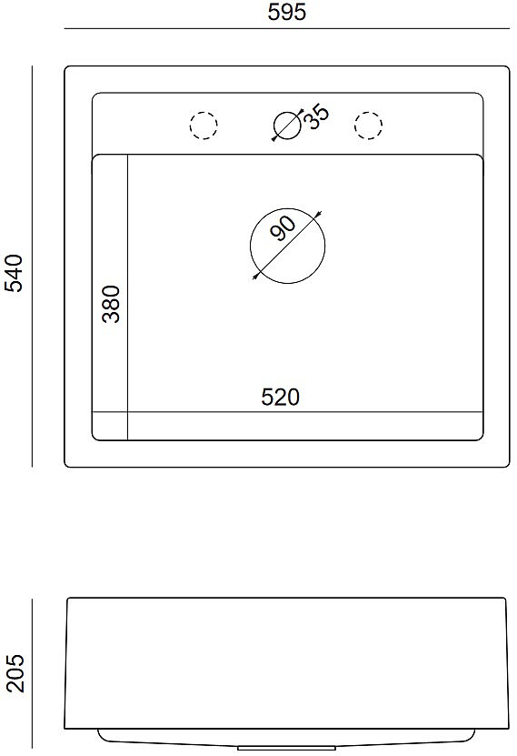 Wymiary komory głównej (mm) W x S x G205 x 520 x 380