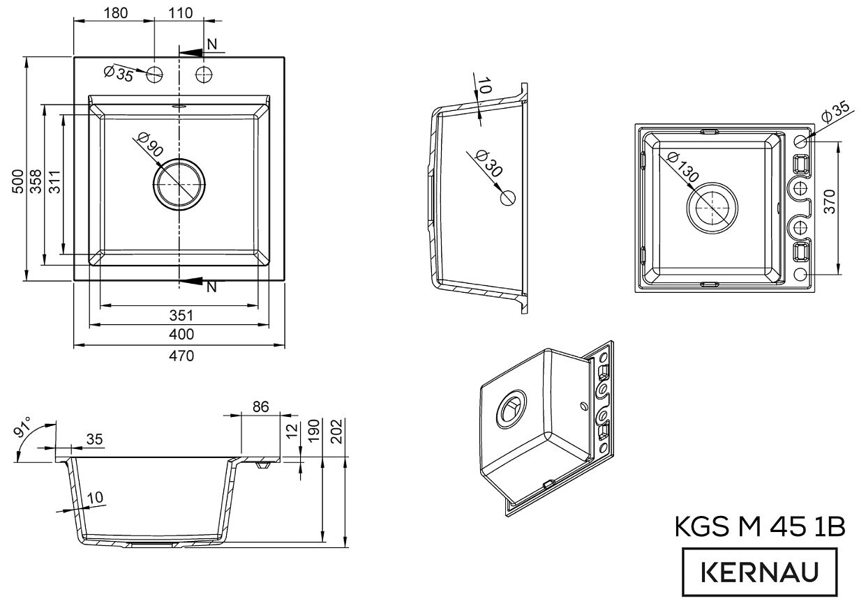 Zlewozmywak granitowy KGS M 45 1B PURE WHITE
